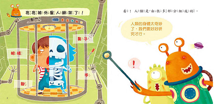 小男孩亮亮被外星人綁架了!奇怪的外星人對人類的身體感到非常好奇,不論是臉部的五官和手腳,外星人都仔細的觀察了一番。對自己身體不太了解的亮亮,也趁機學到了許多身體的奧祕!