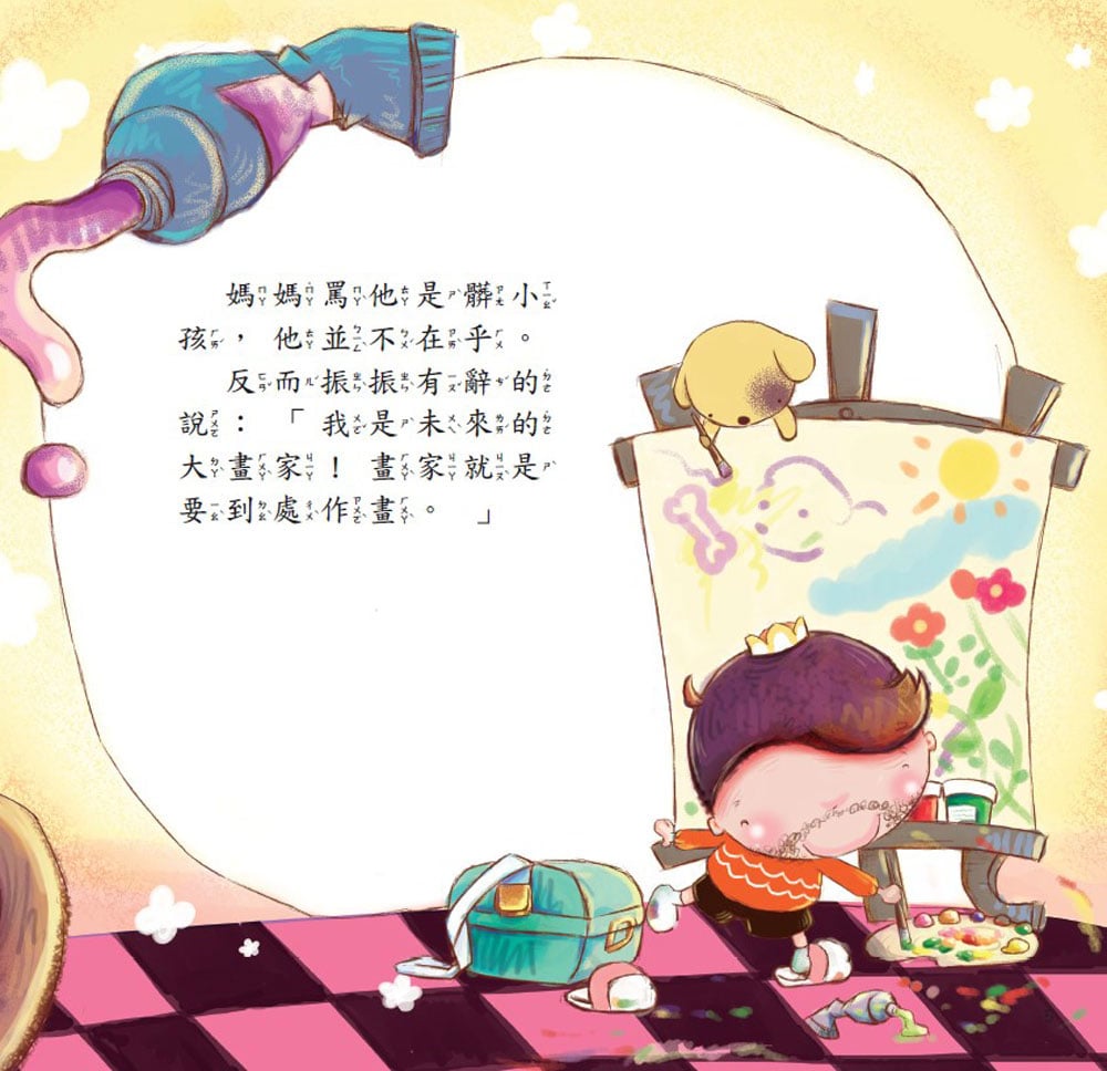 ★《我一點都不髒!》 小王子喜歡在屋子裡的每個角落畫畫,不管是牆上或是地板上都有,媽媽拿小王子一點辦法都沒有。有天,小王子的朋友小胖過生日,小王子穿上一套新衣服到小胖家慶祝,卻遇上了泥巴、貓爪和皮球,把新衣服弄得髒兮兮,小王子要怎樣才不會變成髒小孩呢?