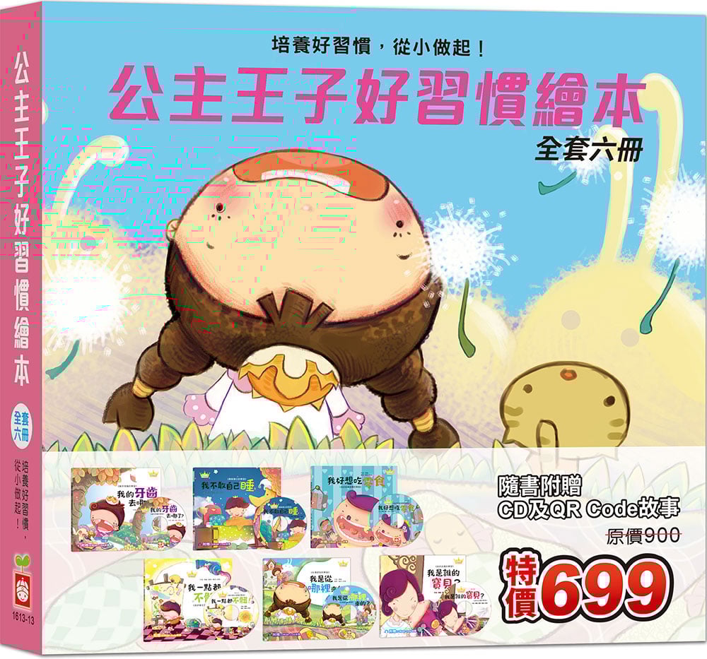 《公主王子好習慣繪本》共六冊,有挑食、髒亂、喜新厭舊等不同主題,透過淺顯易懂、寓意深遠的故事,讓孩子們在閱讀的過程中,理解好習慣的重要性;家長們也能在書末收穫許多幼教小叮嚀,大人小孩一起學習。