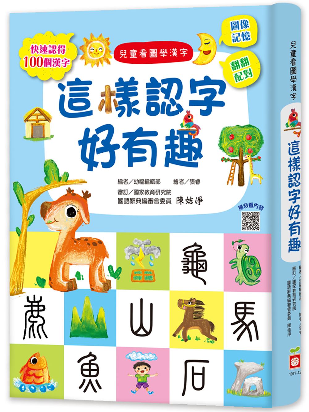 ★趣味圖像:手繪風格圖片,類似孩子創作,提升閱讀興趣。 ★圖像記憶:超大漢字,對照與字形相似的圖片,加深記憶。 ★學習發音:搭配注音符號,學習漢字唸法,並且記住發音。 ★字形演變:字形演變介紹,建立象形圖轉文字的基本概念。 ★常用語詞:常用語詞舉例,增加詞彙,學習正確運用漢字。 ★聯想謎題:趣味問答,可讓孩子動腦思考圖文間的關聯性。 ★翻翻配對:上層和下層分開翻閱,可練習看圖聯想唸漢字。