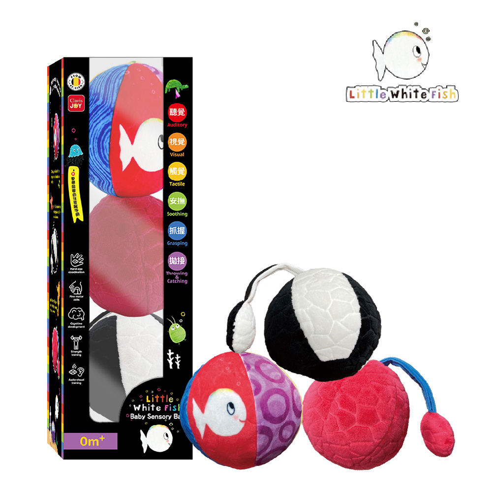 寶寶還這麼小,適合玩什麼玩具呢?答案就是──能看、能聽、能抓、能咬的感官搖鈴球! 來自比利時人氣繪本角色 Little White Fish 小白魚,專為小寶寶設計的 感官探索玩具。 結合多感官刺激、肌肉發展訓練、安撫陪伴一組三顆,玩法百變,陪伴寶寶探索世界的第一步。