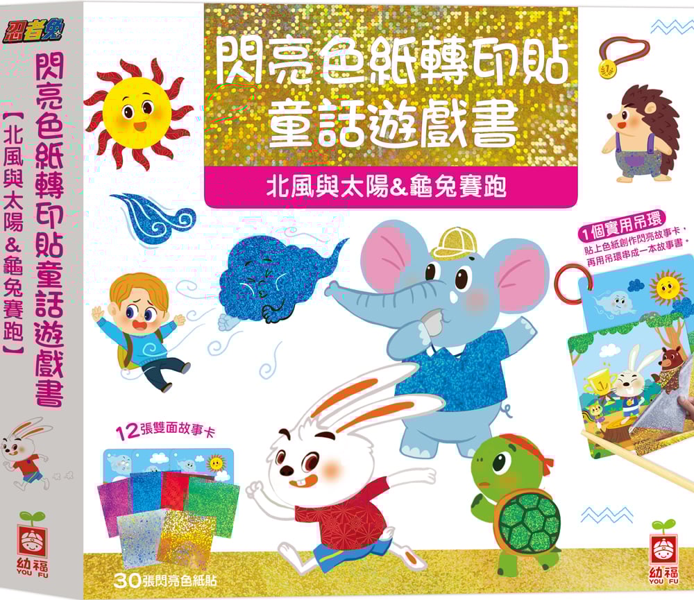 忍者兔閃亮色紙轉印貼童話遊戲書【北風與太陽&龜兔賽跑】