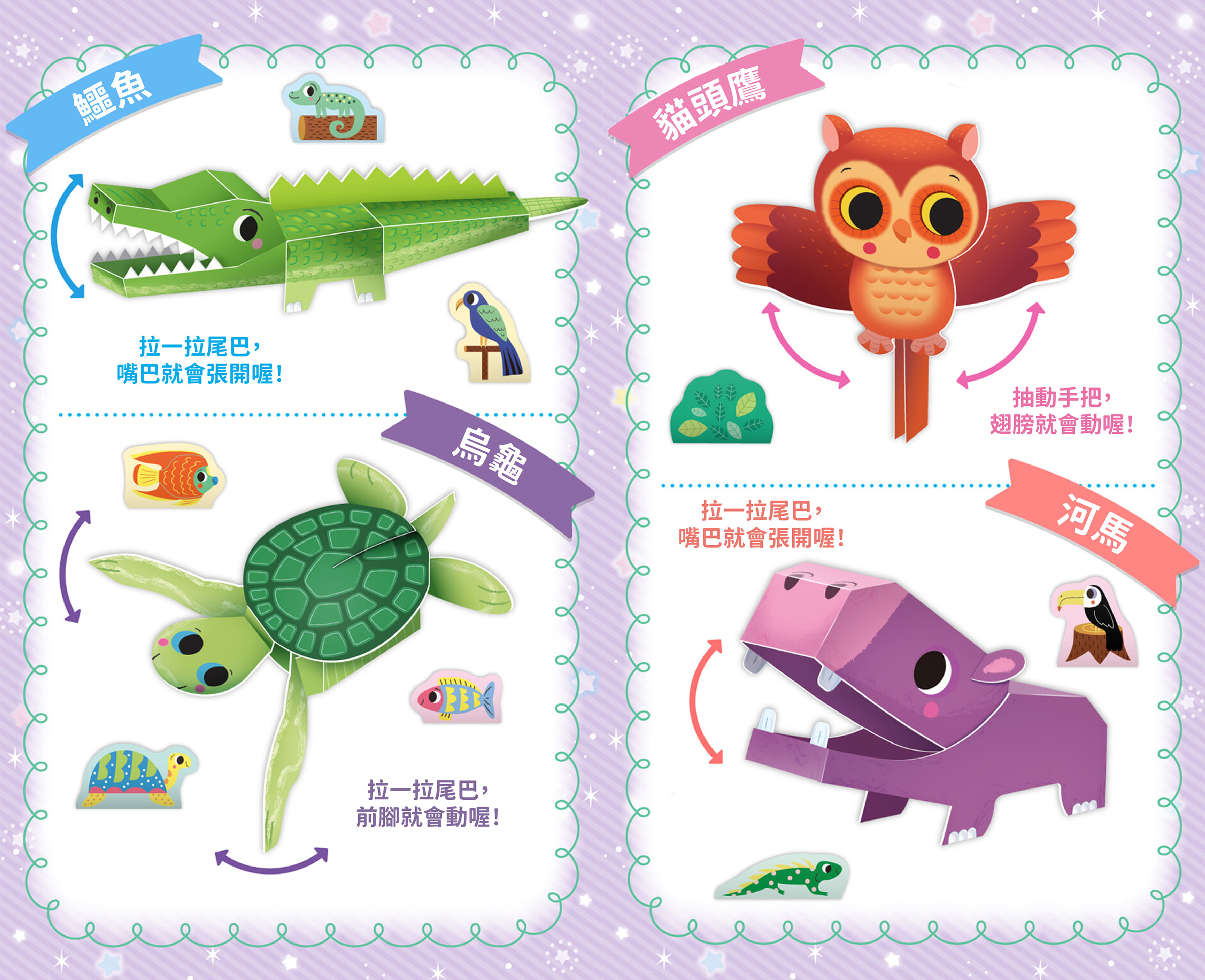 | ■商品簡介 ★會「動」的勞作紙模型,連背面細節都完美★ 本書突破傳統勞作極限,首創特殊的「活動機關」,讓完成的作品不再只是靜態展示,而是能拍動翅膀、張開大嘴,或是靈活的擺頭、動動雙腿……孩子在動手做的過程中,不只體驗DIY的樂趣,更能感受到作品「動起來」的驚喜與成就感。 全書採用雙面全彩印刷,告別傳統勞作背面單調的留白,無論是動物的背影、側臉,甚至是腳底板,都擁有繽紛飽滿的色彩,翻轉一圈,處處皆美,裝飾家裡也很好看! 考慮到孩子手作的順暢度,全書有精密模切線、壓折線,無需剪刀,只需輕輕撕下、黏貼,即可完成。紙張黏貼後不易回彈鬆脫,讓孩子擺脫黏不緊的挫折感,在享受勞作會動的驚喜時,更能收穫百分之百的成就感! ■本書特色 ◆會動的立體活動機關 ◆安全免剪刀,全書精密模切 ◆親子一起玩,樂趣加倍