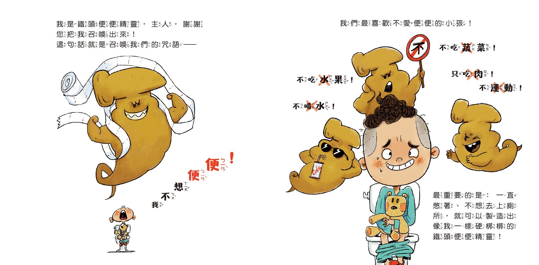 | ■商品簡介 ★台大醫院賴碩倫醫師專業審訂★ 腦洞大開的便便小煩惱,爆笑來襲! 東東因為不想便便,居然把鐵頭便便精靈召喚出來了! 別再嫌便便臭!每一坨便便都是代表健康的「小精靈」! 由台大醫院賴碩倫醫師審訂,並邀請頂尖配音員「花媽」王瑞芹老師親自獻聲,讓本書在歡笑中,多了一份專業與溫度。