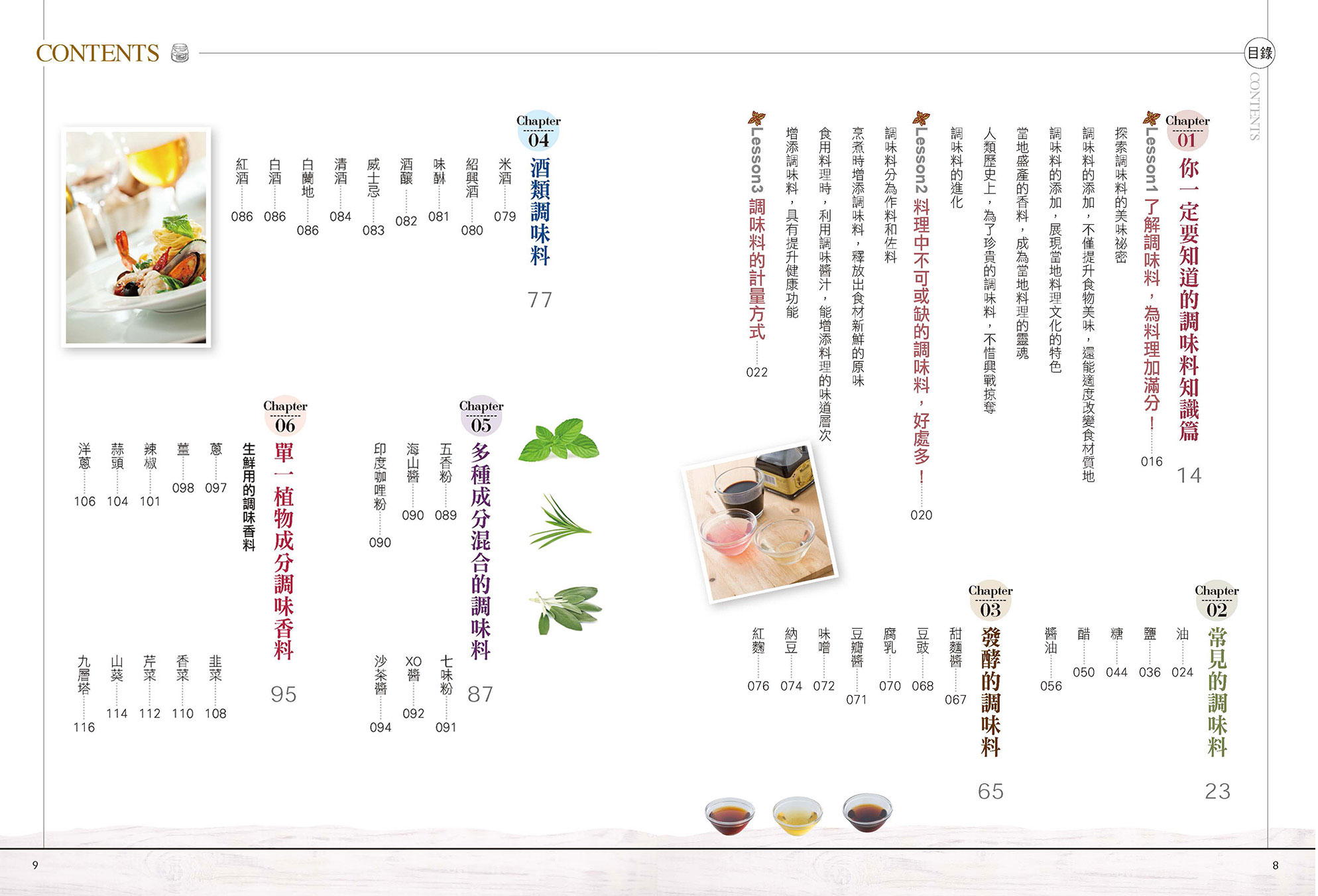 ◆掌握調味料與食材完美搭配精隨,讓料理色、香、味俱全! 端出一道美味的料理,調味料絕對是最大功臣,食材太鹹加一點糖,食材太甜加一點鹽,要讓食材滑潤順口就加一點油,想要凸顯料理香氣就加一點醋,料理好吃的關鍵取決於調味料的種類與多寡。挑對食材,使用講究調味料,讓料理的美味層次更上一層樓。