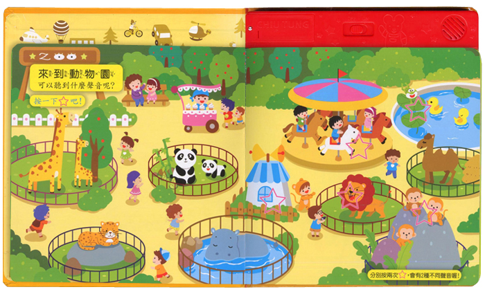 | 各式各樣的可愛動物會發出不同的聲音 可以聽到40種不同的聲音呢! 按一下圖片☆會發出聲音喔!再按一下☆會出現2種不同聲音喔! 同時按兩個以上☆標誌或開關週邊,會有不正常的反應出現 ●使用注意事項 2.請勿為了查看內部而思開頁面或切開或分解機械,容易造成故障 3.書本內部採用精密的電子儀器所組成,請勿撞擊或重壓,並且避開高溫、潮濕的場所使用及保管 4.不要用尖銳的東西去按電源開關 5.長時間不使用時請取出電池 *請使用錳電池、鹼性電池 |