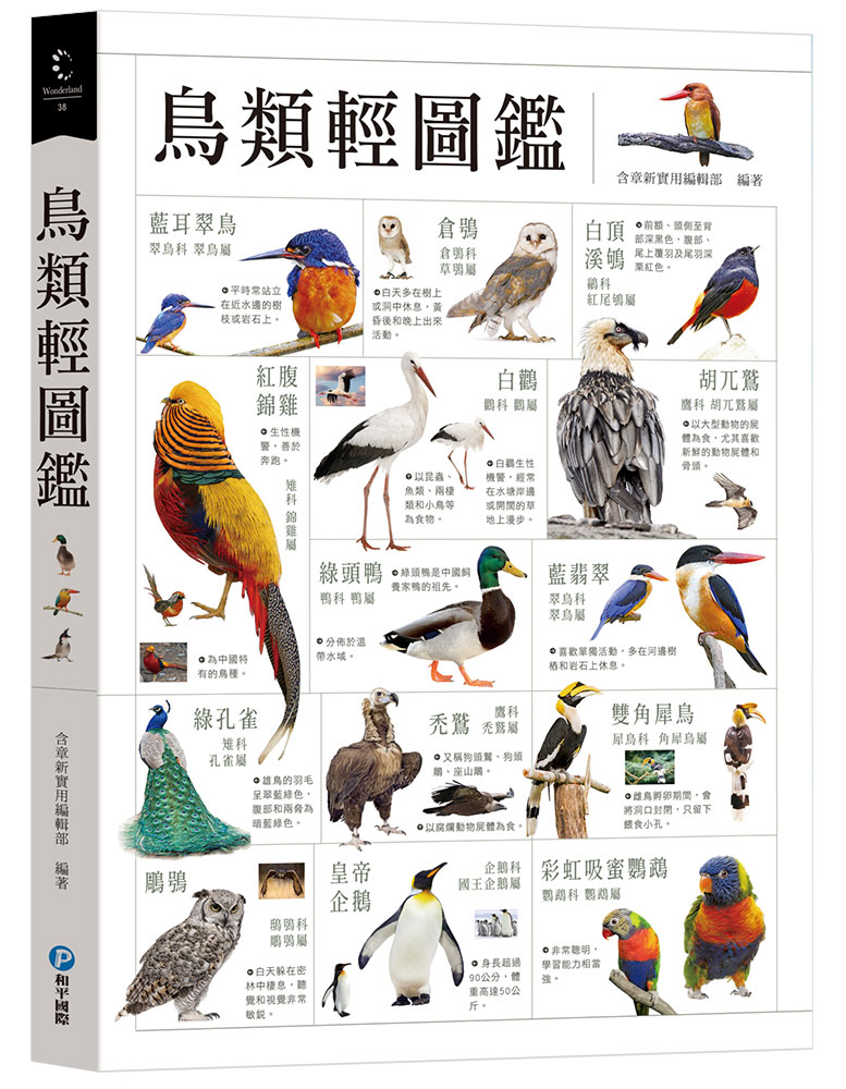 全球目前有9千種以上的鳥類,曾出現在台灣的則有6百多種。 但隨著愛鳥人士增加、養鳥風氣興起, 我們究竟該如何正確對待這些或兇猛或嬌小的動物呢? 為了讓讀者能對鳥類有清楚的認識,本書特選159種鳴禽、30種走禽、47種游禽、60種涉禽、42種猛禽、39種攀禽加以介紹,內容包括鳥類的基本介紹、繁殖生態、棲息地與食性等。內容精采實用,插圖精美。透過數千張高解析度大圖,讓你輕鬆辨識與欣賞,適合廣大鳥類愛好者鑑賞和收藏,讓你輕鬆觀鳥、識鳥與賞鳥,帶你走進不一樣的鳥類王國。