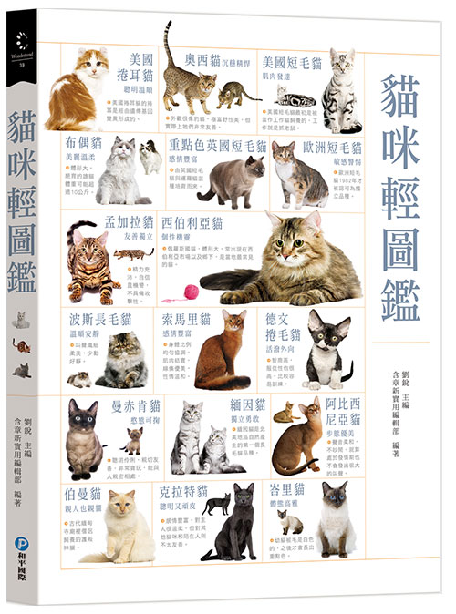 目前全球已被認定的貓咪品種大約45〜70種(不同協會有不同認定標準), 新的品種也還在陸續培育中。 本書總共收錄35個品種、174個分支,常見的品種貓均已名列其中。