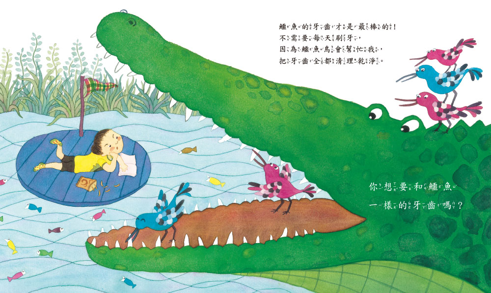 還是長出鱷魚的牙齒? 這樣就不用刷牙,鱷魚鳥會幫我把牙齒全都清理乾淨, 可是鱷魚鳥在我頭上拉屎就不好了!