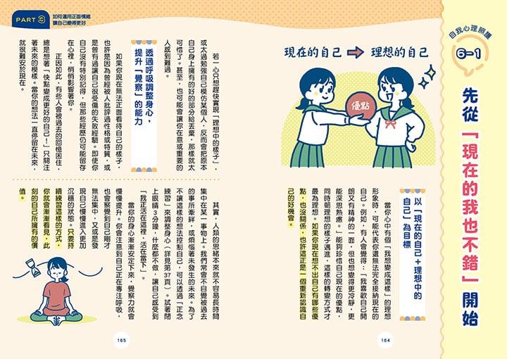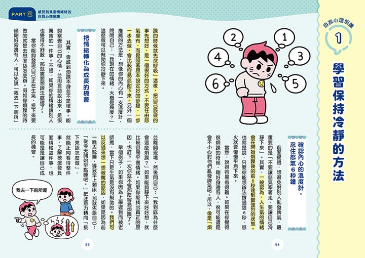 ■商品簡介 孩子的情緒,就像五顏六色的調色盤,多樣又複雜, 孩子每天的心情都在變化,就算平時開開心心,偶爾也會不安或是低落。其實,他們只是需要一點時間,跟自己的「心」好好相處。 .PART 1 什麼是「內心世界」? .PART 2 感受到負面情緒時的自我心理照顧 .PART 3 如何運用正面情緒讓自己變得更好 學會與看不見的內心世界相處,除了能夠讓孩子更了解自己,也能夠嘗試靠自己的力量度過各種情緒風暴。在青春期前就先學會處理情緒,預先建立維持心理健康的機制,可以讓孩子在將來面對更多挑戰時,能有足夠的能力保護自己的內心。即使是跌跌撞撞的青春期,也可以讓孩子懂得自我照顧,勇敢去體驗精彩人生! 暖心推薦(按姓氏筆畫排序)