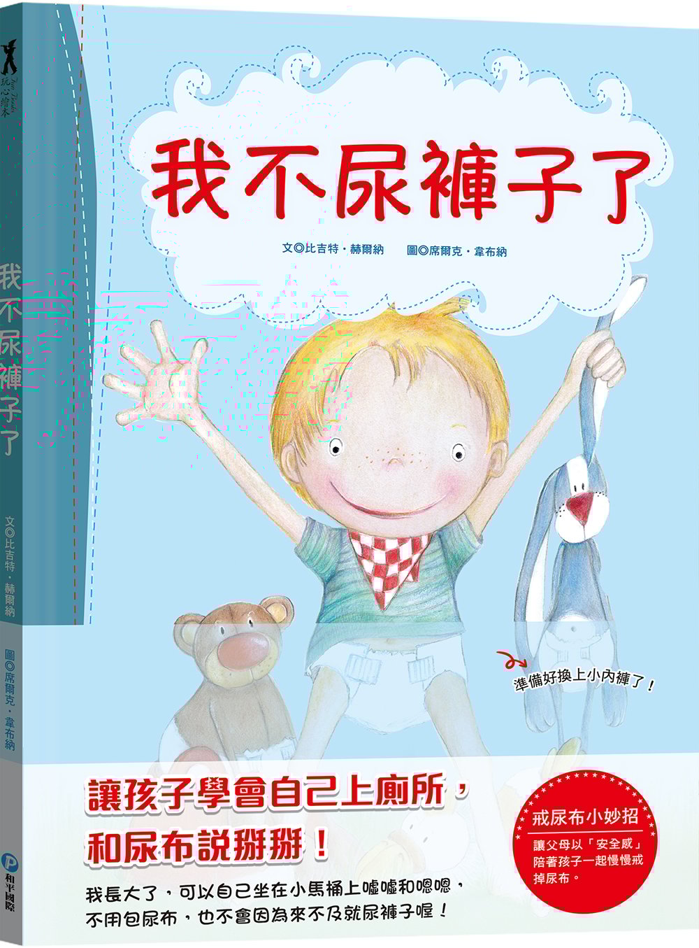 艾德和朋友們一起玩遊戲時發現,只剩下他還穿著尿布,所以有看起來鼓鼓的「尿布屁屁」,這成為了他不想讓朋友知道的小祕密。 艾德也想學會自己上廁所,於是他脫掉厚厚的尿布,穿上超酷的小內褲!不過,他似乎還不習慣沒有穿尿布的日子,經常在玩耍到一半時突然很想上廁所,但是來不及去,所以尿溼了一條又一條的小內褲……有什麼方法可以讓艾德不再尿褲子呢? 【父母給予的安全感及耐心,是孩子戒尿布的關鍵。】 孩子戒掉尿布,學習自己上廁所,其實就和學說話及走路一樣,是成長的一個階段,父母不用操之過急,也別因為孩子無法馬上學會自己如廁就責罵他或催促他,以免孩子因為壓力而更需要尿布,拉長了戒尿布的時間。