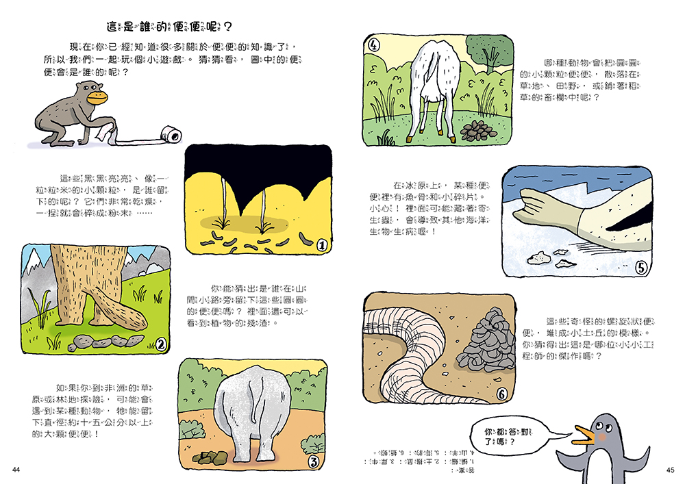 | ■商品簡介 完美便便對人體多重要?解開身體裡的健康祕密! 人類、大象、青蛙和小小的螞蟻之間有什麼共同點呢? 這本有趣又不臭的便便書,可以讓你了解到以下知識: 哇!看來便便的知識多到令人難以想像,其實不只這些,書中還有更多新奇的內容。翻開書本,一起研究便便裡的祕密吧!