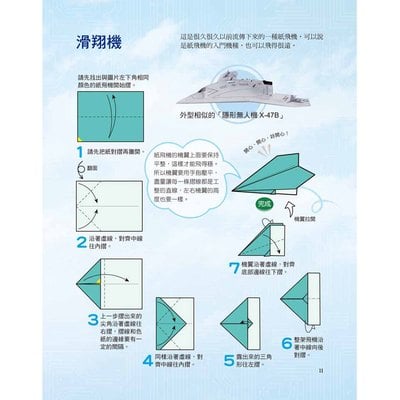 ◎現在,只要輕輕撕下本書內頁,就可以按照線條摺出飛鏢機、噴射機、太空梭等7種機型