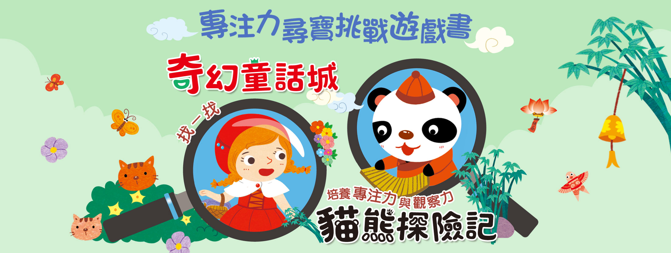 跟著貓熊一起到各處探險,把場景中和圖示完全相同的圖案,全部找出來!