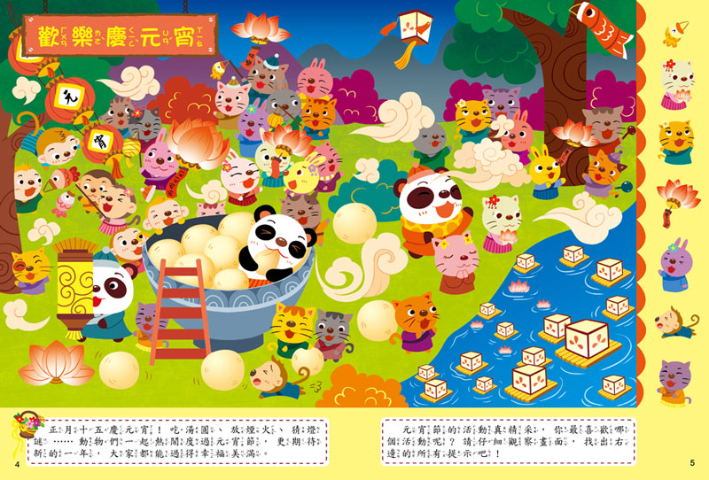 哇!好多繽紛熱鬧的節日場景,在插圖裡面你能找到什麼呢?