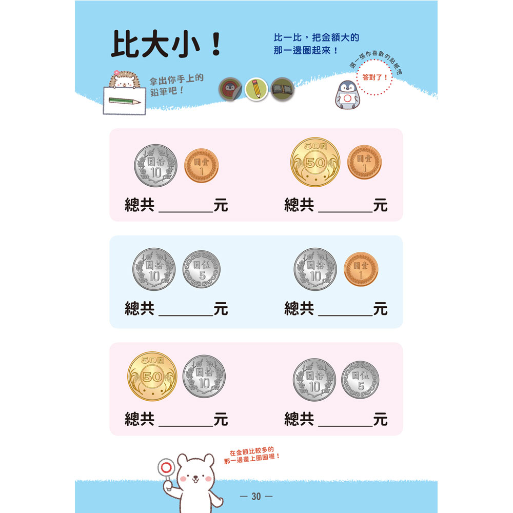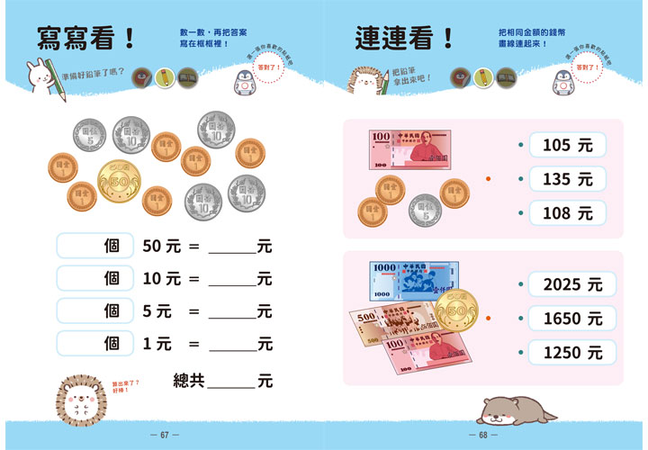 對於理解力尚未發展完全的孩子們,「反覆練習」和「多次實際運用」是最有效的學習法。學習使用金錢也是同樣的道理,這個練習本就是為此而設計。